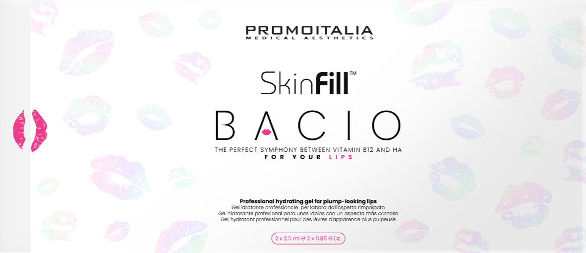 Skinfill® Bacio, desarrollado por Promoitalia, es un bioestimulador específicamente diseñado para la mucosa labial y el área perioral, creado para mejorar la hidratación, calidad del tejido y definición natural de los labios sin generar un efecto de sobrevolumen.